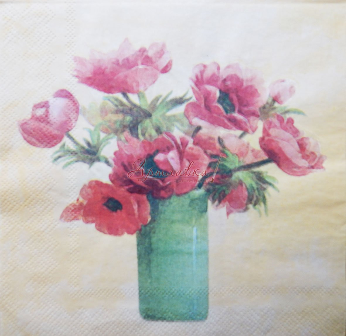 Главная › Декупажная салфетка "Букет в вазе", 33*33см