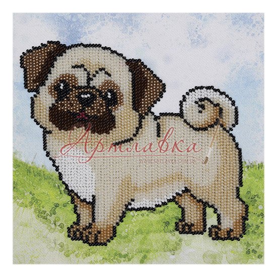 Набор для вышивания бисером "Щенок мопс", 17х17см