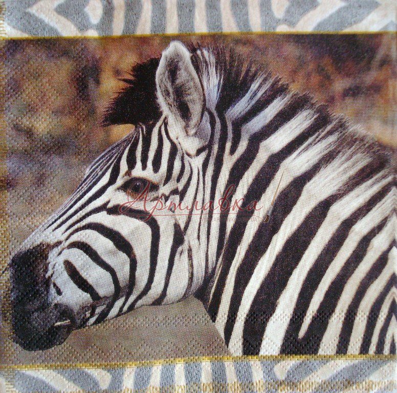 Главная › Декупажная салфетка "Зебра", 33*33см