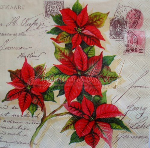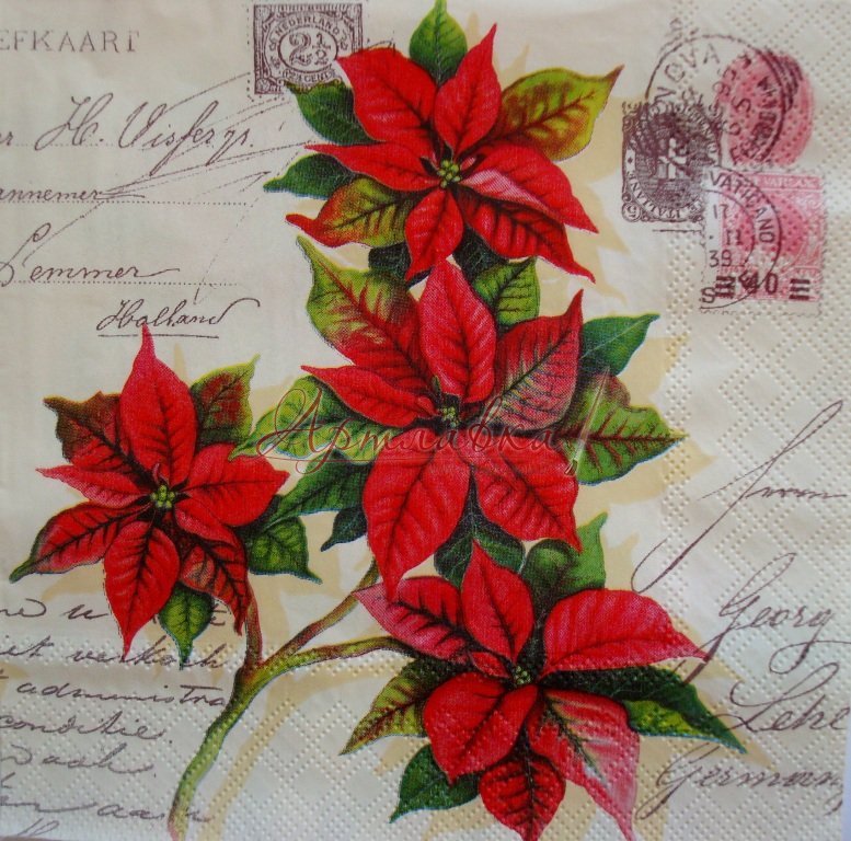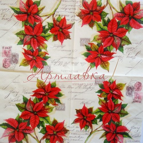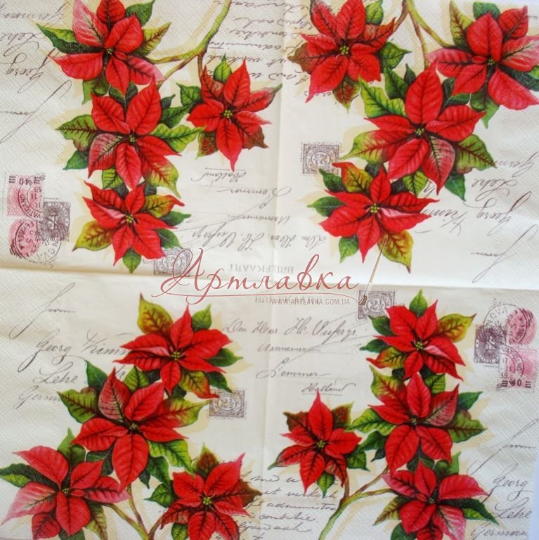 Главная › Декупажная салфетка "Письмо и цветок", 33*33 см