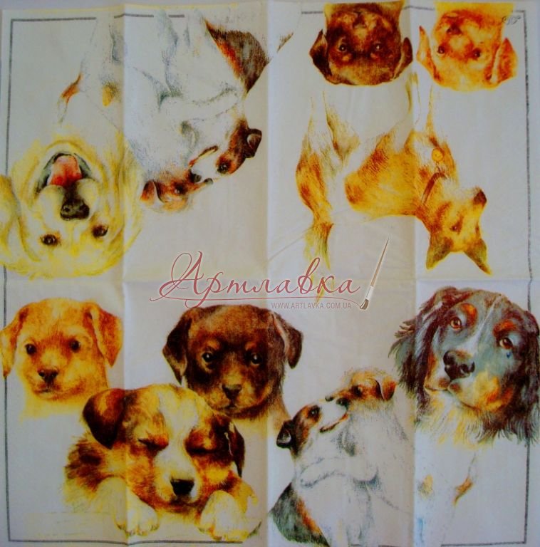 Главная › Декупажная салфетка "Щенки", 25*25 см