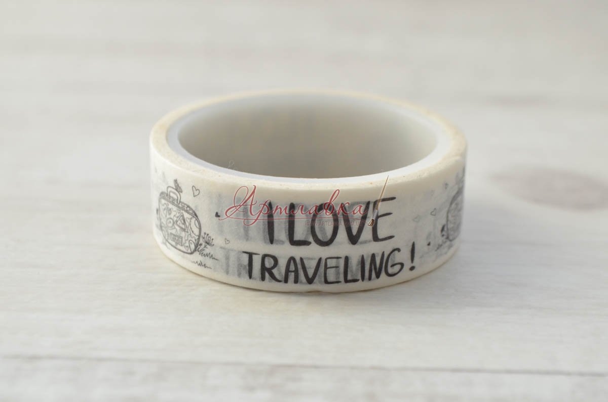 Скотч декоративный "Люблю путешествовать", 1,5см, 5м