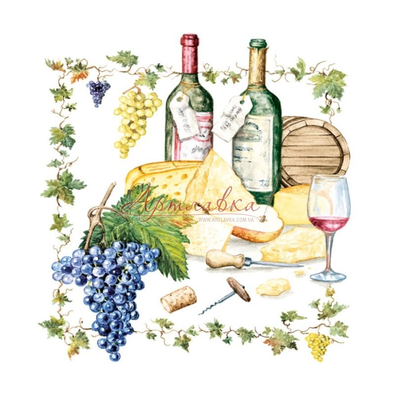Главная › Декупажная салфетка "Вино и сыр", 33*33см