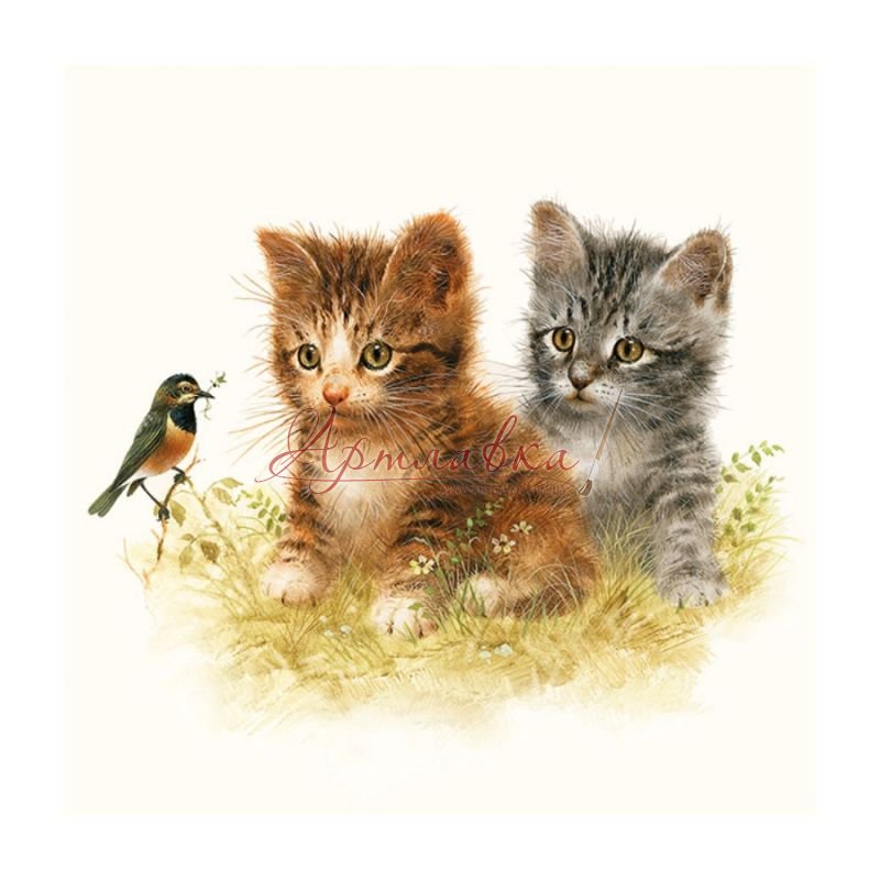 Главная › Декупажная салфетка "Котята и птичка", 33*33см