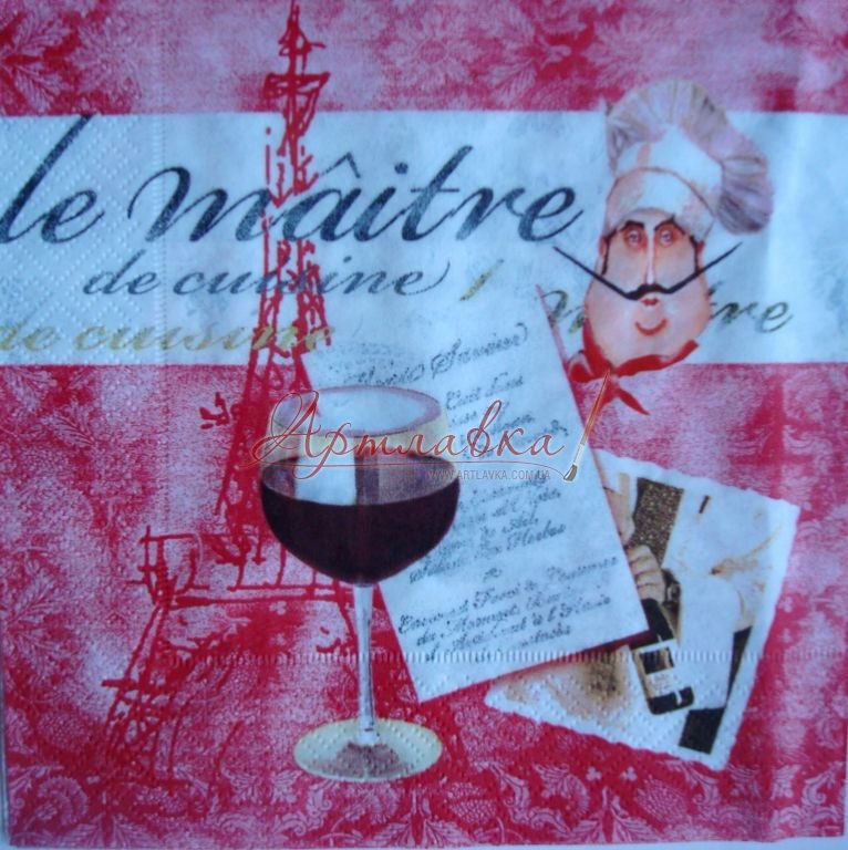 Главная › Декупажная салфетка "Французский повар", 33*33см
