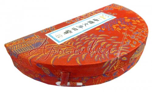 - футляр в форме веера-полукруга красного цвета с китайским цветочным узором