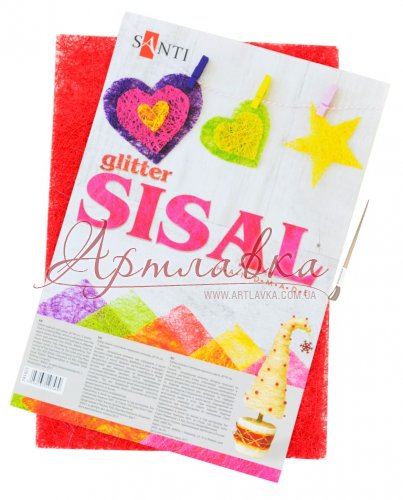 Сизаль с глиттером листовая, красная, 20х30, 5л./наб.