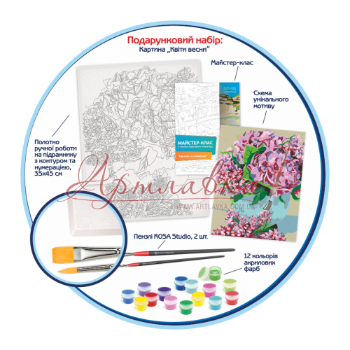 - холст ручной работы на подрамнике с нанесенным контуром и нумерацией (размер полотна 35*45 см);