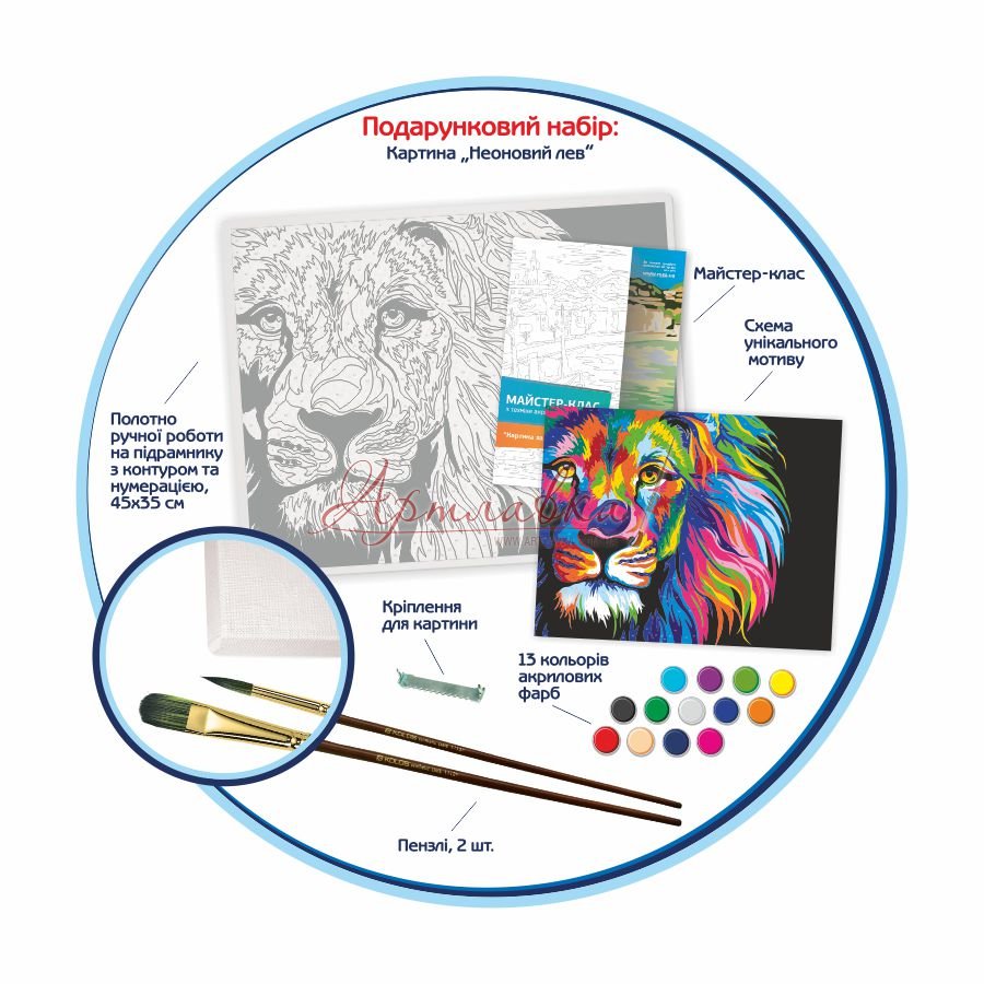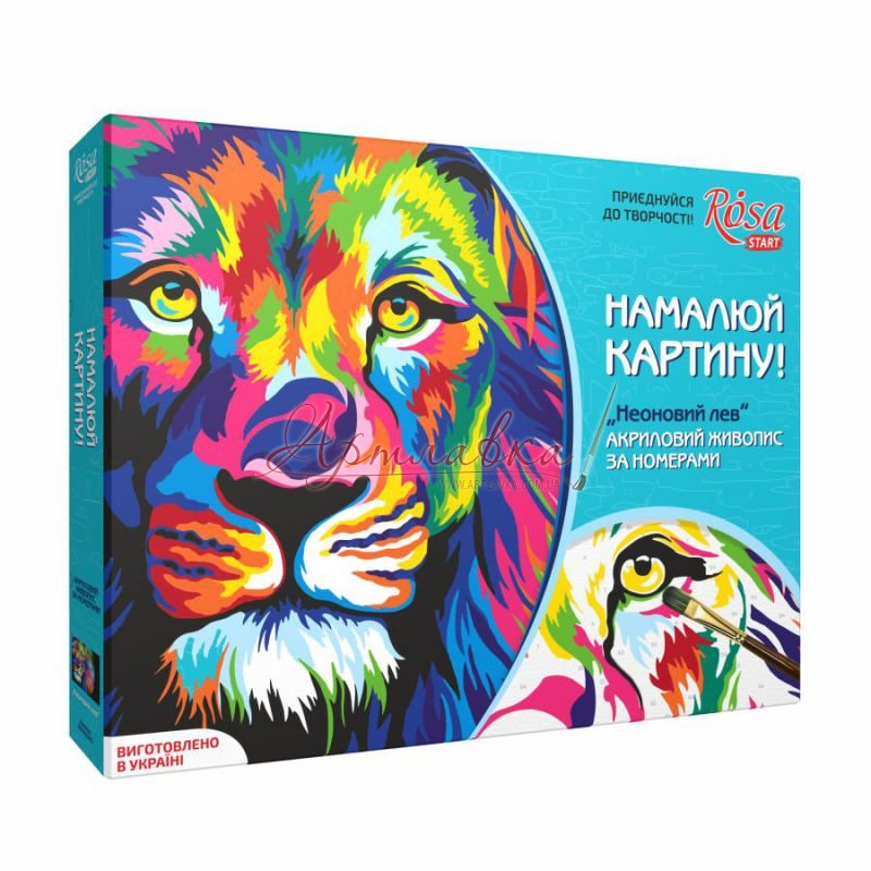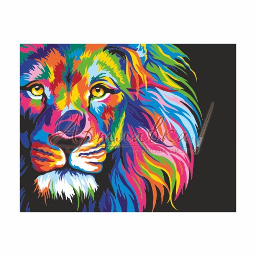Яркий неоновый лев на картине - царь всего интерьера, при чем выиграшно будет смотреться и в светлых, и в темных помещениях.