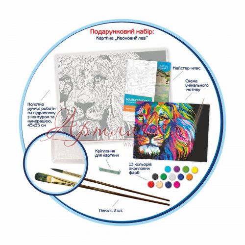 В наборе есть все нужное для написания картины, изображенной на упаковке:
