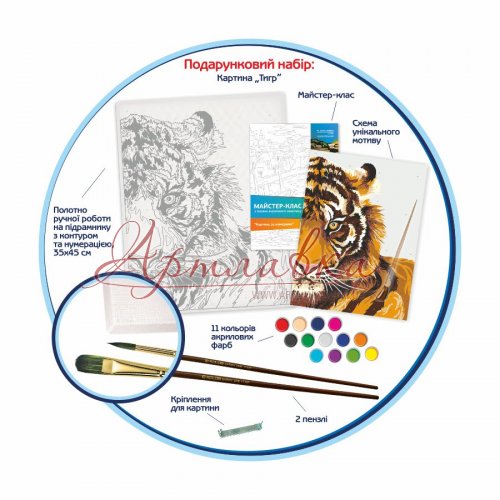 Мало кто равнодушен к котикам, а большие кошки вызывают восхищение. Картина "Тигр" отлично будет смотреться как в детской или гостинной, так и в мужском кабинете. Набор для творчества "Картина по номерам" - отличный подарок занятому человеку, чтобы вдохнуть немного творчества и вдохновения в жизнь!