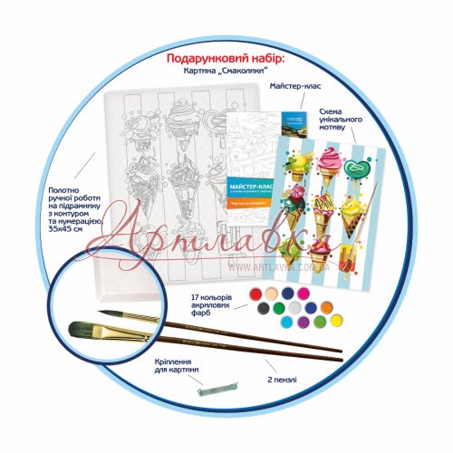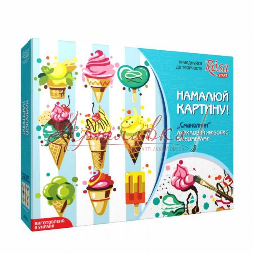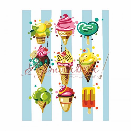Яркие аппетитные дессерты на картине - отличный декор и для дома, и для кондитерской. Подарите другу-сладкоежке картину по номерам с сочными рожками мороженного, пусть наслаждается сладостями без вреда для фигуры!
