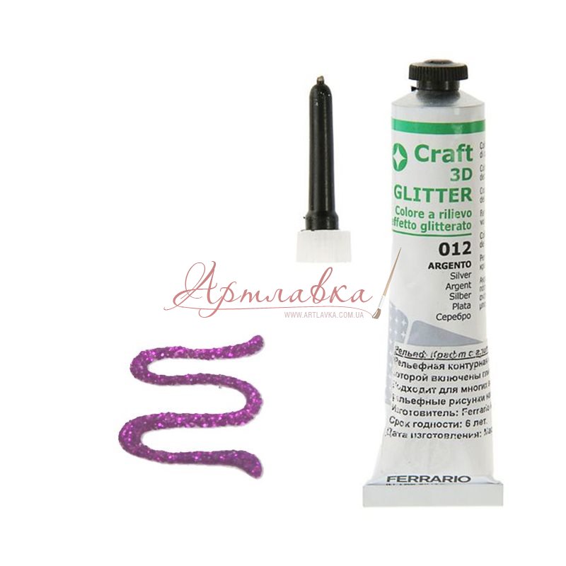 Контур рельефный с блестками Ferrario Craft Rilievo Glitter, 20 мл, Маджента