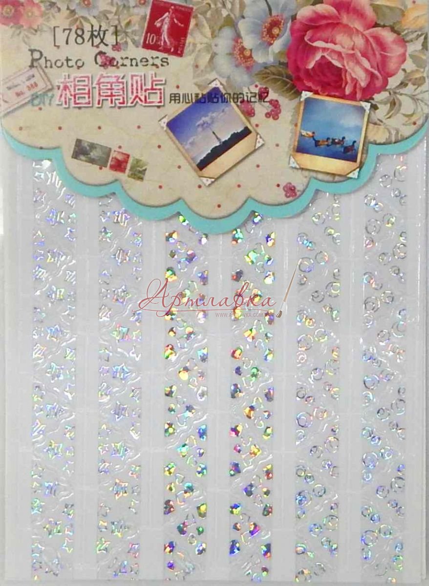 Клеевые уголки для фото с радужным оттенком для создания авторских альбомов в технике скрапбукинг.