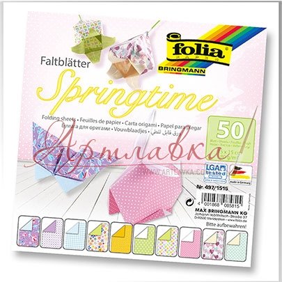 Бумага для оригами "Springtime", 15х15см, 80 гр., 10 мотивов, 50 листов