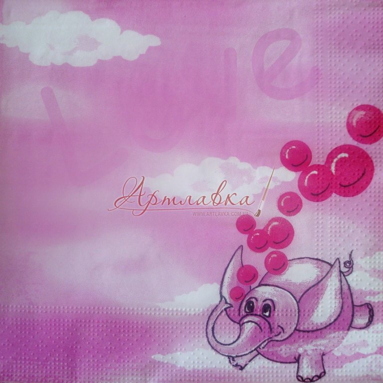 Главная › Декупажная салфетка "Слоник на розовом фоне", 33*33см