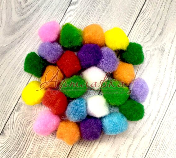 Разноцветные помпоны меховые для творчества, диаметром 2см.