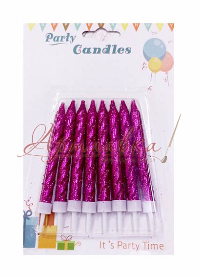 В наборе свечки в торт 8 шт. с глиттерным напылением и пластиковым креплением. В серебристом цвете. Длина свечки 9см
