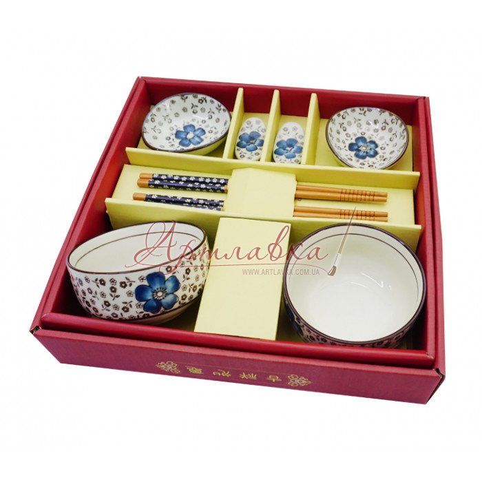 Поэтому мы предлагаем такой стильный комплект для любителей сашими. Тут Вы найдете оригинальную керамическую расписную посуду, пиалы (сеюзару) и стильные палочки для суши, как их называют хаси.