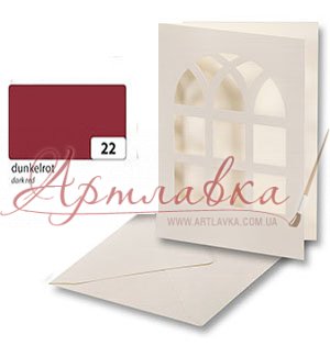 Заготовка Конверт с открыткой "Старинное окно", темно-красный