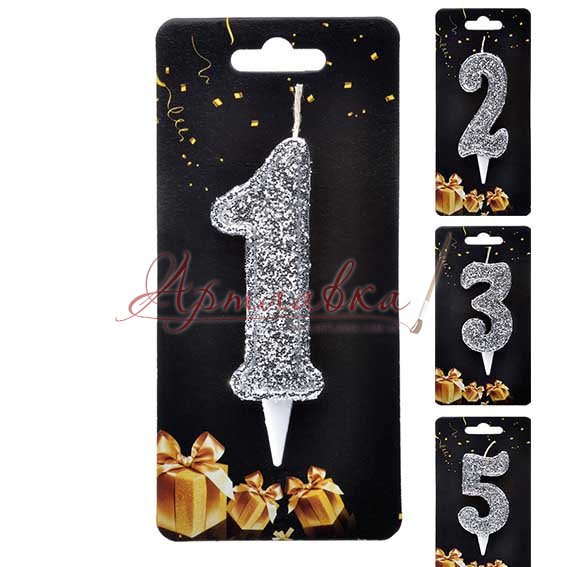 Свеча на День рождения в виде цифры. Цена указана за 1 штуку. Красивый блеск в цвете серебро подойдет для любого тортика.