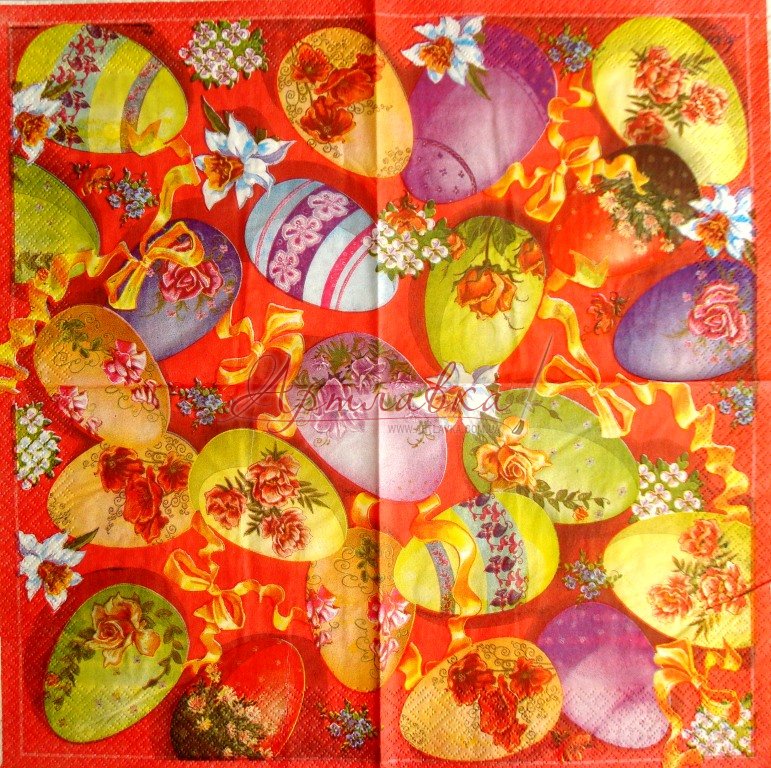 Главная › Декупажная салфетка "Пасхальные крашенки-3 ", 33*33 см