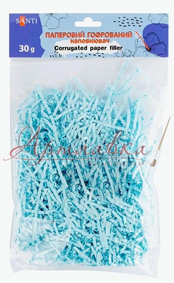 Наполнитель декоративный "Бумажная стружка", гофрированная голубая