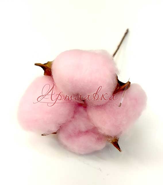Декоративная ветка на проволочном основании с одним цветком хлопка розового цвета.