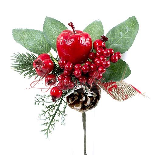 Новогодняя искусственная веточка в красивой композиции из зелени, ягод и шишек. Отличная основа для зимнего декора, оформления веночков. Высота веточки 18см