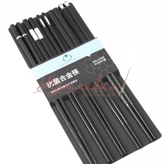Палочки для еды, 5 пар, пластик, Черный с серебром