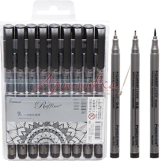 Набор лайнеров черных "Raffine" 8+кисть Marco