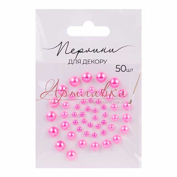 Полужемчужины клеевые, розовые, 50шт/уп