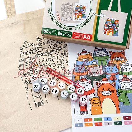 Набор для творчества Сумка-разрисовка "Коты в шапках", 38*42см