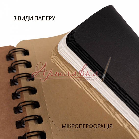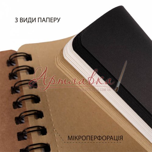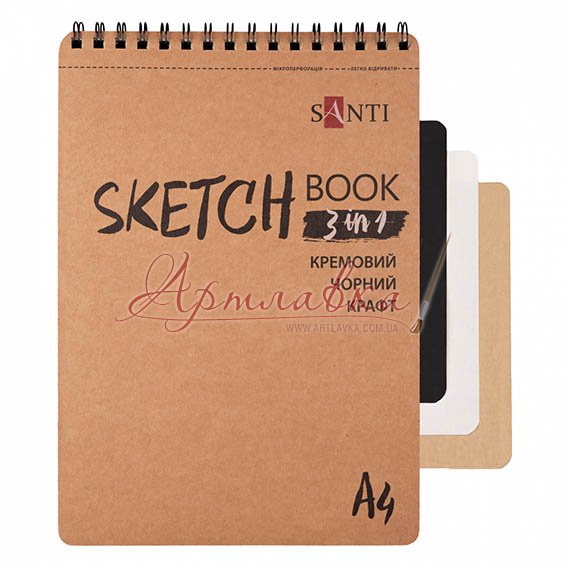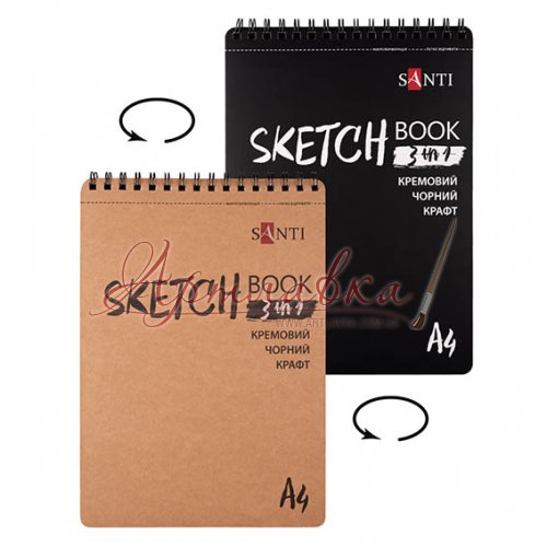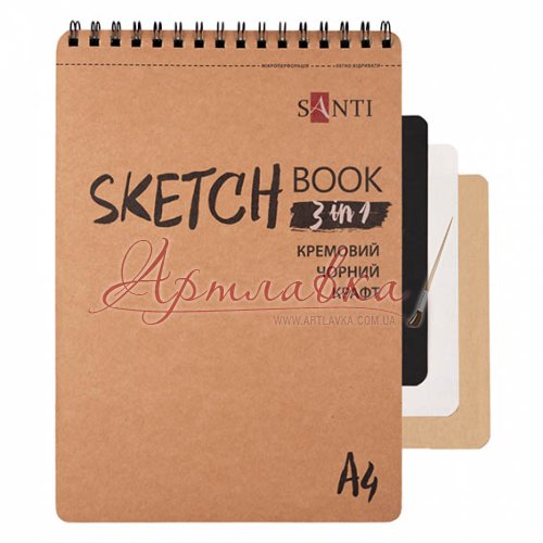 Скетчбук Santi Dual 3в1 чорний, крафт, кремовий, A4, 33 арк.