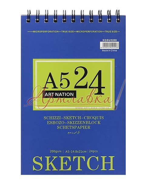 Альбом для эскизов А5, SKETCH, спираль 200 г/м², 24л.