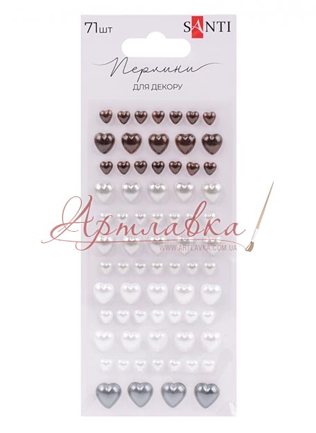 Главная › Жемчужины клеевые "Сердечки белые,серые" 71шт/уп