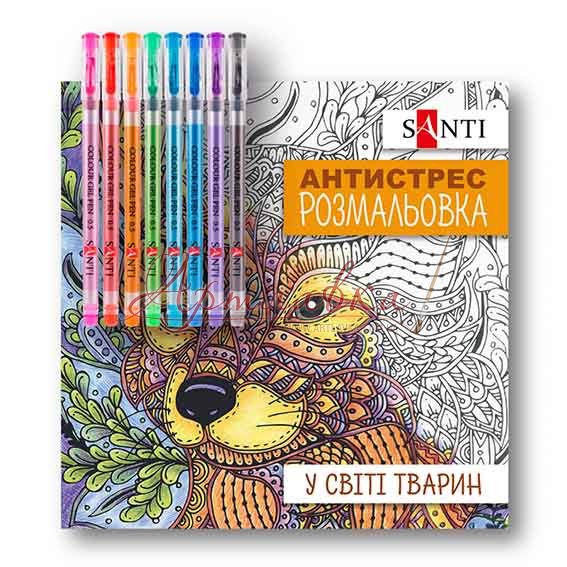 Раскраска антистресс, с гелевыми ручками "В мире животных"