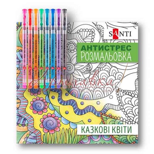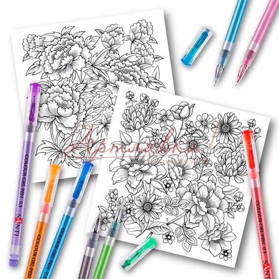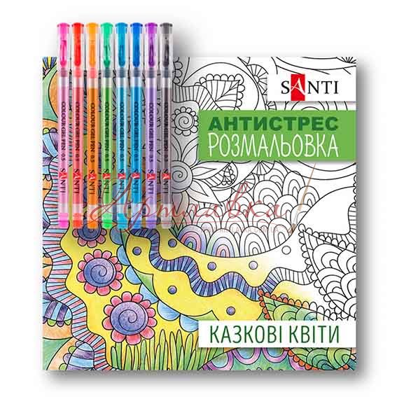 Раскраска антистресс, с гелевыми ручками "Сказочные цветы"