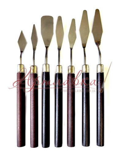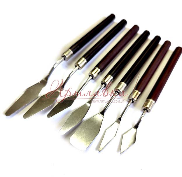 Инструменты сделаны из стали и используются для смешивания красок, нанесения их на холст, создания текстур и исправления ошибок. Подходят для работы с гуашью, маслом и акрилом. Ручка мастихина эргономичная.