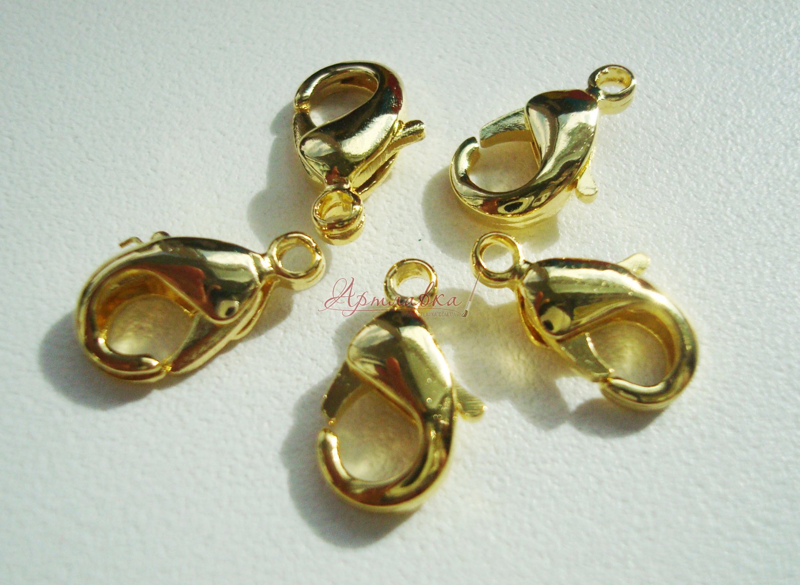 Застежка-карабин, золото, 12*6,5мм, 10шт/уп