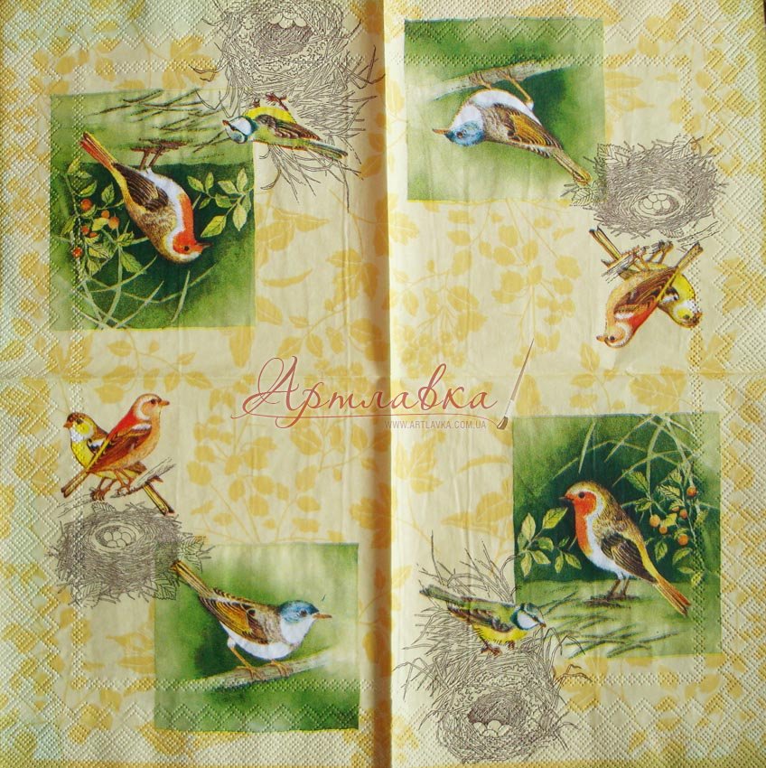 Главная › Декупажная салфетка "Птички и гнездо", 33*33см