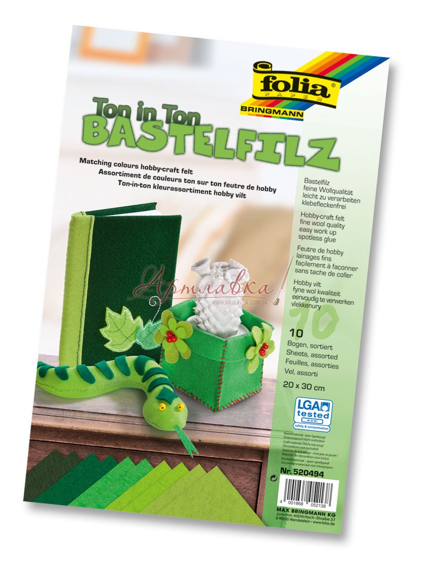 В наборе Folia "Оттенки зеленого" 10 листов фетра, размером 20*30см в одной цветовой гамме, что позволяет создавать удивительные поделки и делать красивые цветовые переходы в одном стилевом решении.