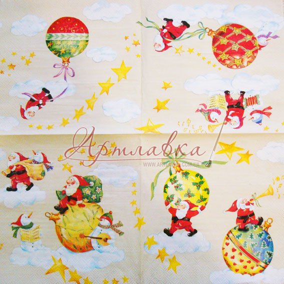 Главная › Декупажная салфетка "Санта и игрушки", 33*33 см
