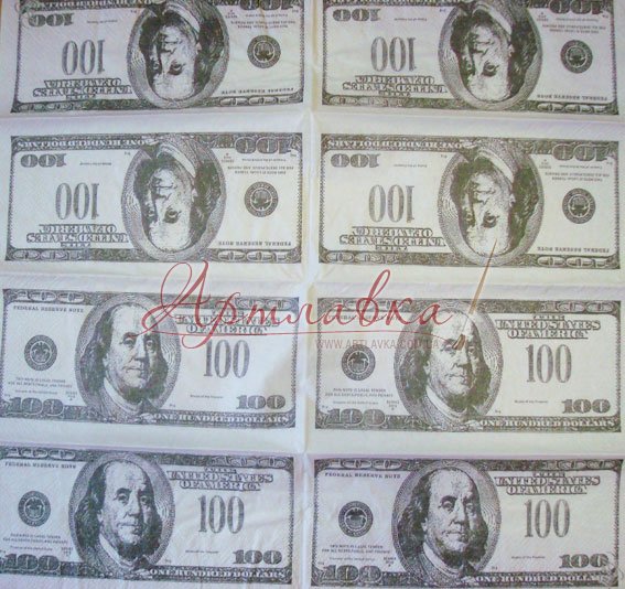Главная › Декупажная салфетка "100 долларов", 33*33 см