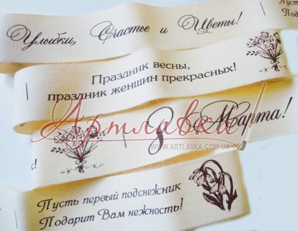 Лента хлопковая "8 Марта", 2,5см*2м