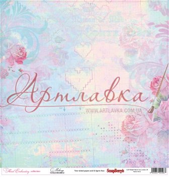 Бумага для скрапбукинга двухсторонняя, Цветочная вышивка, "Меланж", 180г/м2, 30,5*30,5см