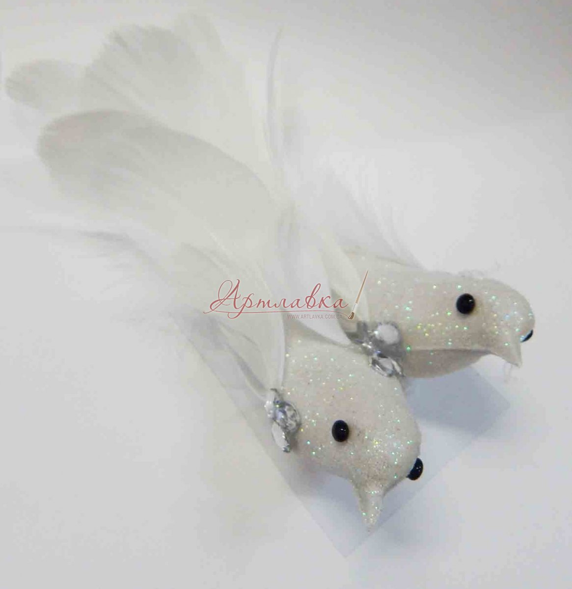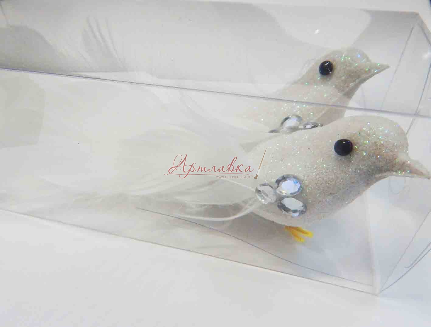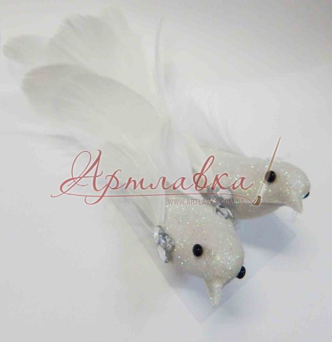 Декоративные птички с акриловыми камешками, белые, 2шт/уп