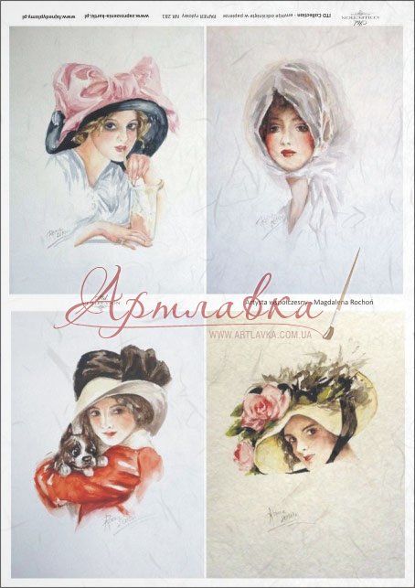 Рисовая декупажная карта "Женские портреты - 3", 20х30см