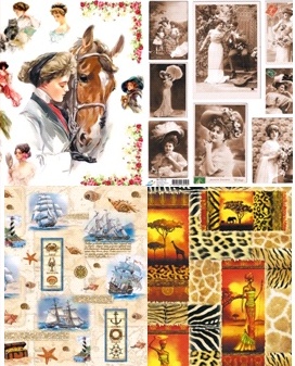 У продаж зробили нові декупажні карти від ТM "ART" 30*40см (тематика різна: це й вантажні листівки, морська тематика, африканські мотиви й багато чого інше).