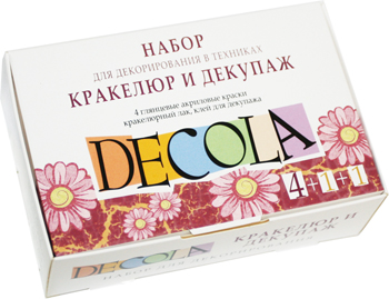 Акрилові фарби Decola легко наносяться на поверхню, мають високу покриваністю, добре змішуються й швидко висихають. Після висихання здобувають глянсовий блиск.